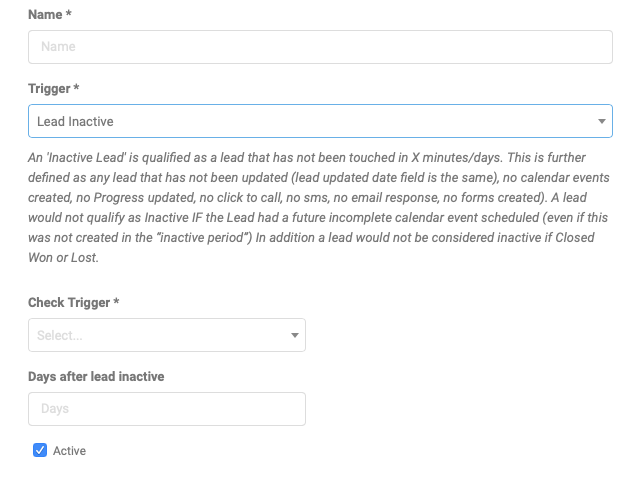 To clarify the definition of the Trigger 'Lead Inactive' text will now display to define exactly when this Automation setting is used.