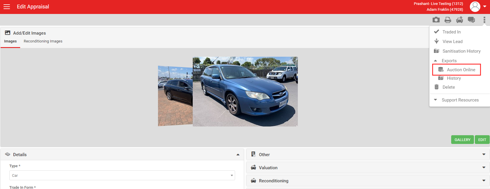 - Only Send Vehicles When Marked As Traded - User will only be able to trigger the Auction Online Export if the Appraisal 'Traded' tick box is checked.
