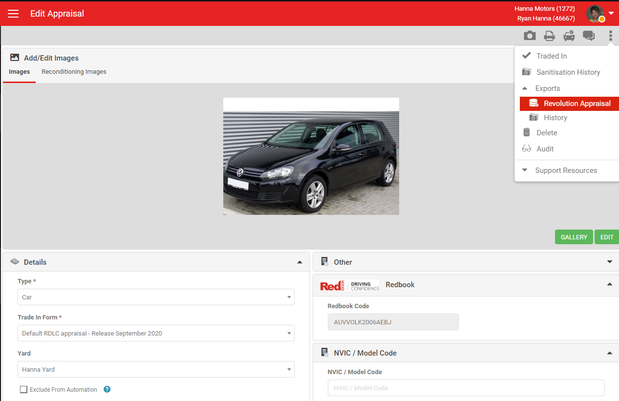AutoPlay now has the ability to to export the AutoPlay Appraisal data directly to Revolution DMS (Australia). If you would like to sign up for this service please speak with your Customer Experience Manager. This service is enabled Via a Role, Revolution API Push. This will enable a menu option within 3 dot menu, navigate to Exports and Select the Revolution Appraisal Option. This Functionality is User and Yard restricted.