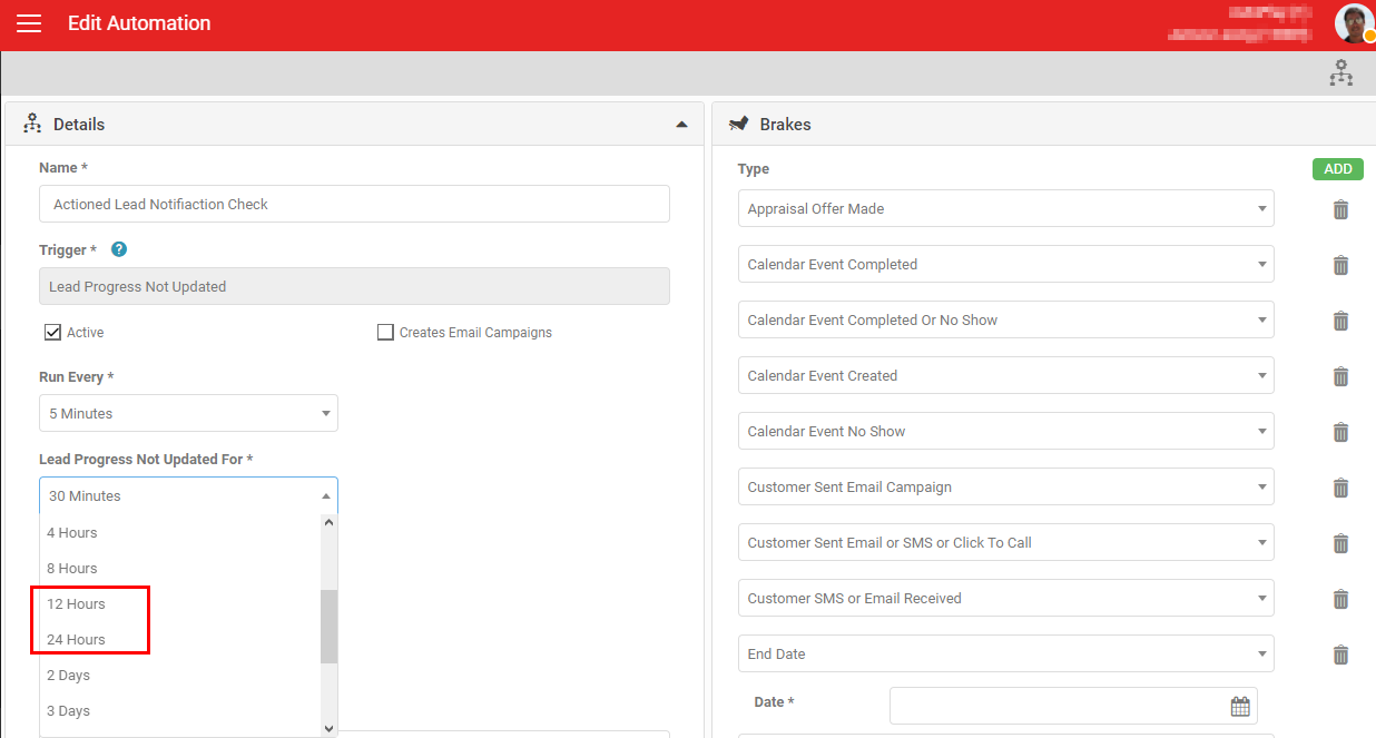 There has been an addition to the Time Periods able to be selected for Automation settings. A new option of 12 Hours has been added, 'Day' has been renamed to 24 Hours and the options are now listed in the correct chronological order.