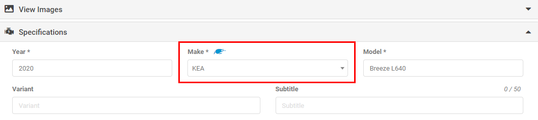 For our New Zealand clients, If the account is also enabled for the Trade Me Export function where listings are able to be selected manually, if the Make has been marked as 'Valid Trade Me Model' (This admin screen is only available to AutoPlay users and will be expanded in time), a Blue Trade Me Kiwi icon will appear next to the Make.