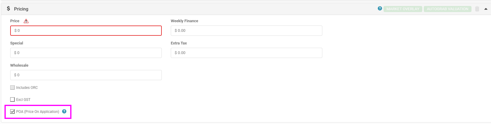 To better support the pricing options available on Trade Me for Trucks, Boats and Machinery a new check box option has been created so that the listings price field gets exported with the correct information to display as POA