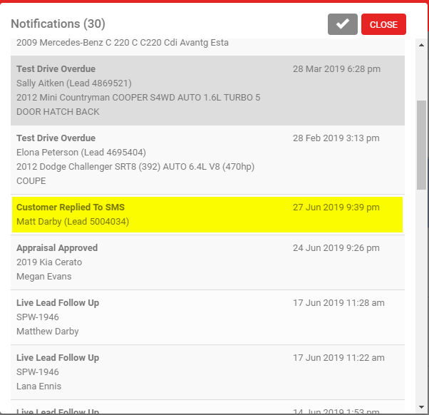 Role Management - Send Lead SMS enabled for Notifications, you will also receive a Notification when the customer replies.