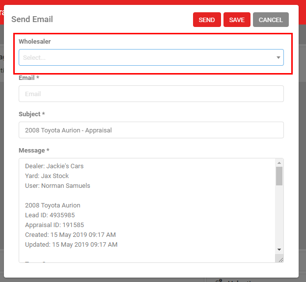 Note that 'Email PDF' will email exactly the same form as you can print so it may be appropriate to select the 'Email Wholesaler' option - this removes any confidential internal valuations or customer data. With the 21.4.1 Release, this function has now been changed to populate the email and content and have it sent from within AutoPlay, previously this was opening your devices default Email Client (EG, Outlook), and allowing a user to type in their own recipients.