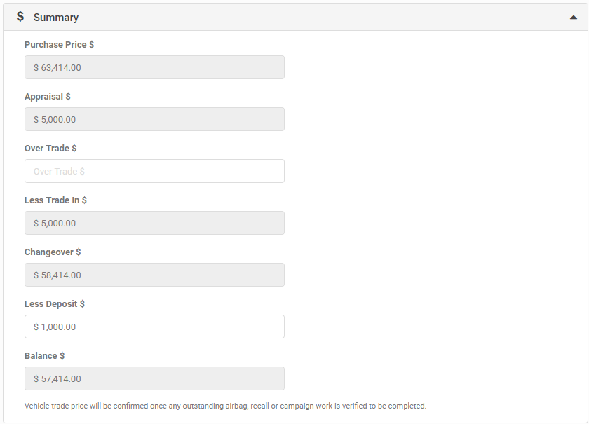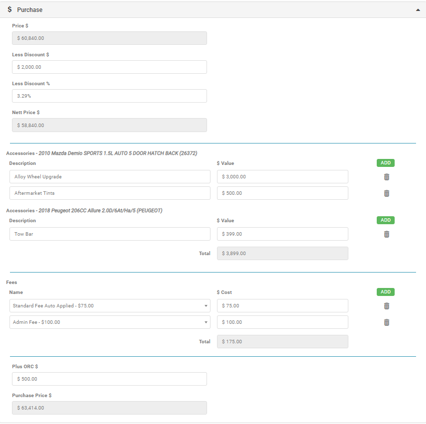 Purchase Price $ - The Purchase Price field pulls through from the bottom of the 'Purchase' section