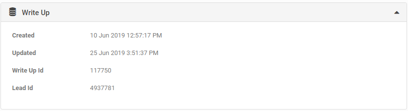 The 'Write Up' section includes basic details about your Write Up Form including;