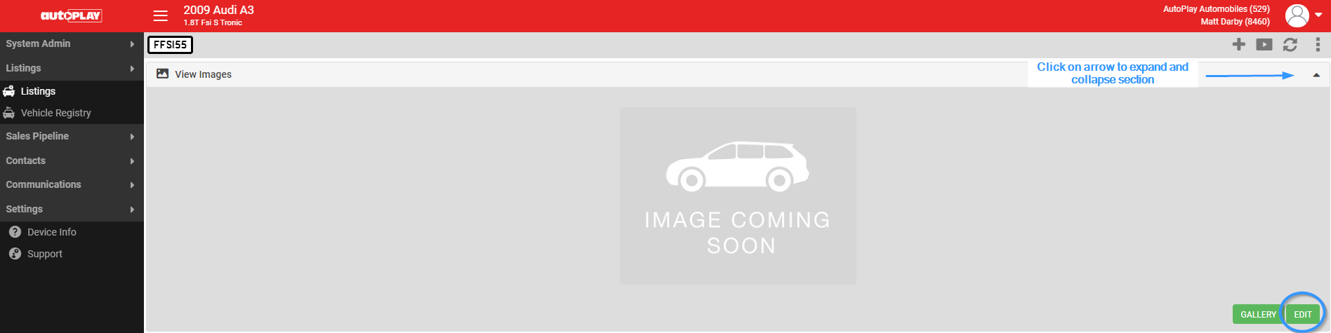 To add images, go to the View Images section, click on the arrow to expand if required > Edit