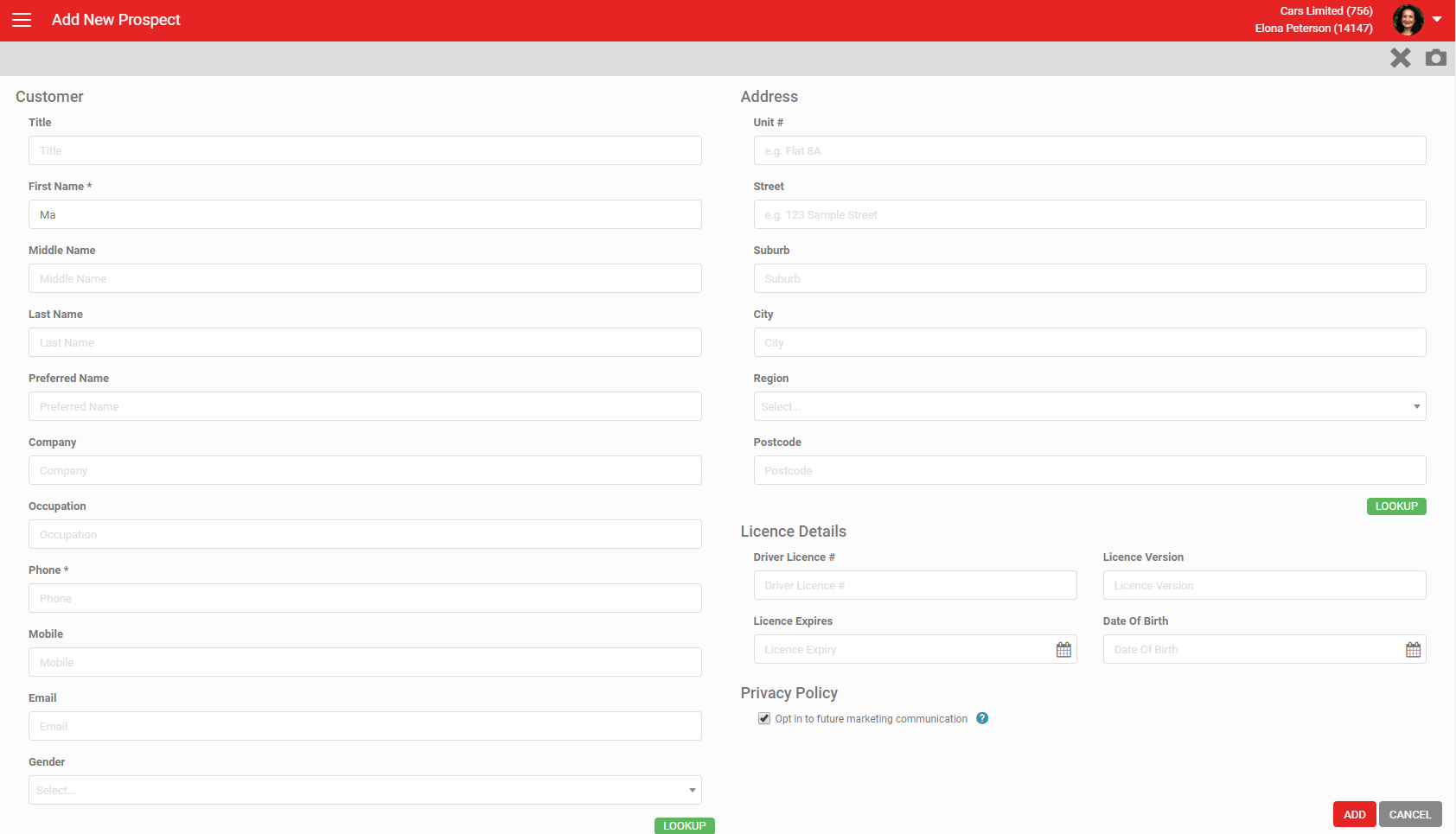 - You can click on the camera icon in the grey action menu to scan the customers Drivers Licence or Business Card. Click HERE to find out more about Licence Scanning.