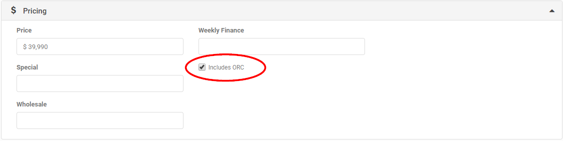 - All Vehicles - Every single listing will automatically be considered 'Includes ORC'. When this option is set you will not see a check box on each individual listing.