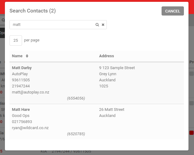 The results returned will be contacts that exist in your database with similar details - with the most similar matches at the top of the list. Once you've identified the contact you want to view, click on them to access their details.
